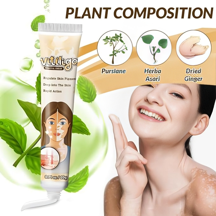 تقليل البهاق: يحتوي على مستخلصات عشبية، لطيف وآمن، بدون آثار جانبية، يعمل على إصلاح الميلانين المفقود ببطء.