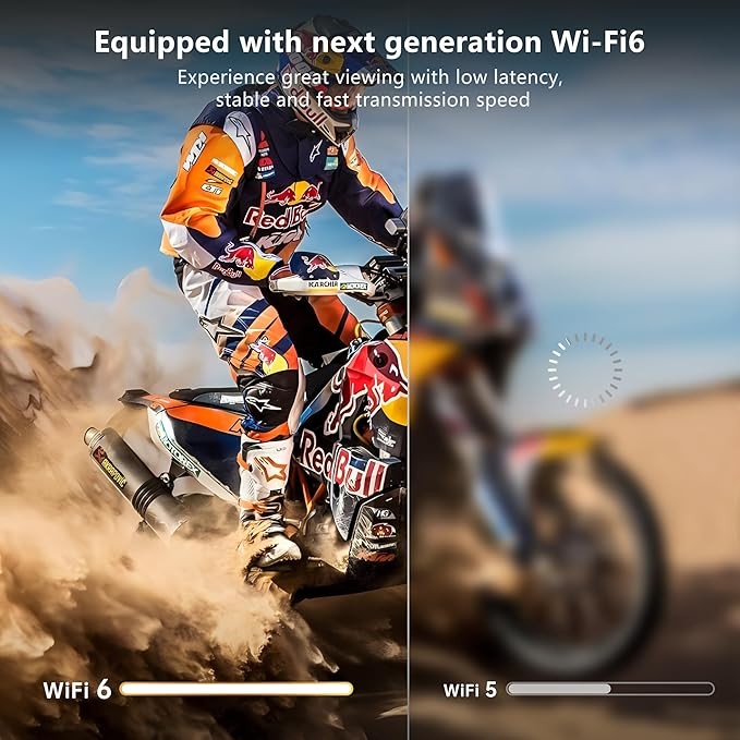 【واي فاي ثنائي النطاق 2.4+5G6】 متوافق مع أجهزة Android وIOS وظيفة مرآة الشاشة لاسلكيًا، 2.4+5G واي فاي ثنائي النطاق 6 يضمن تجربة تسجيل شاشة ثابتة وخالية من التأخير. كما يدعم جهاز العرض الصغير أيضًا اتصال BT5.0 بالبلوتوث مكبرات الصوت.
