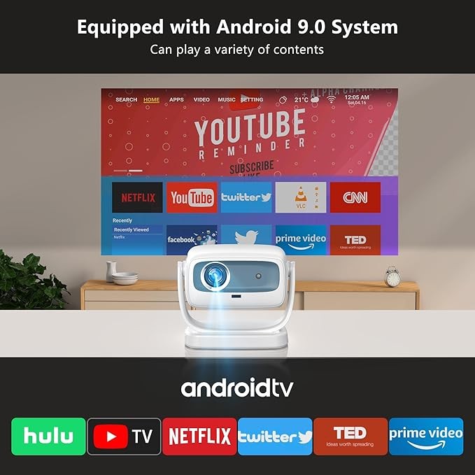 【بديل مثالي للتلفزيون الذكي】يأتي جهاز العرض مزودًا بنظام Android، ويمكنك تنزيل معظم تطبيقات الفيديو في السوق لمشاهدة مقاطع الفيديو دون الاتصال بالهاتف المحمول. إنه تقريبًا أفضل بديل للتلفزيون ضمن ميزانية محدودة. نصائح: نظرًا للقيود المفروضة على التطبيقات مثل Netflix، فأنت بحاجة إلى شراء جهاز تلفزيون إضافي للاستمتاع بالوظائف الكاملة.