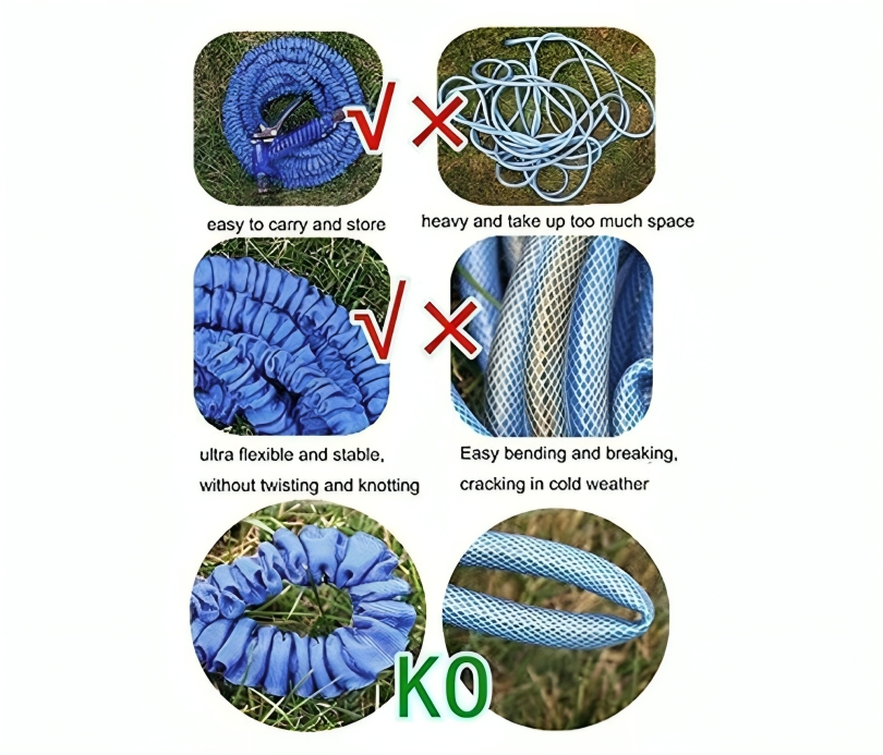 الخرطوم يتمدد بفعل ضغط مضخة الماء الى ثلاثة اضعاف طوله الطبيعي ومن ثم يتقلص بمجرد تفريغه من الماء