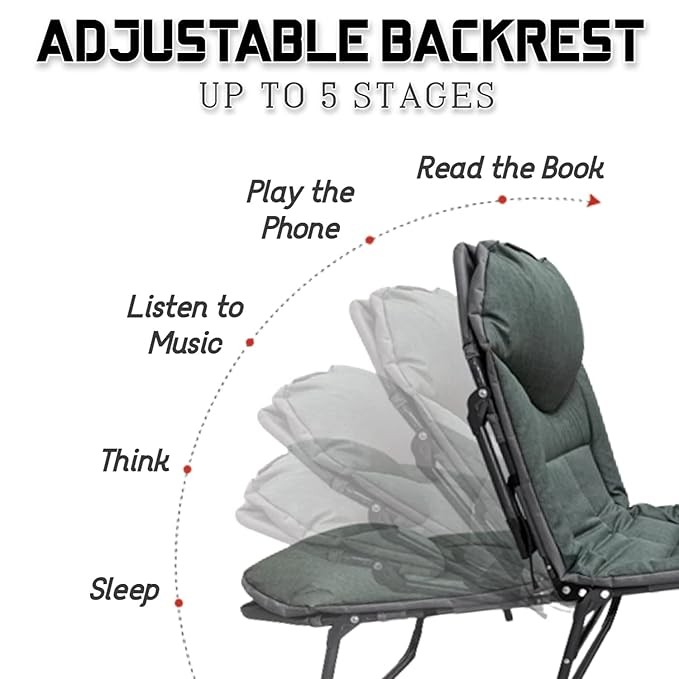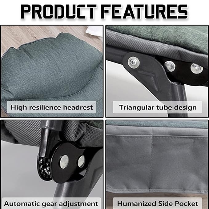 كرسي صالة قابل للطي بخمسة أوضاع: سرير التخييم هزاز لطيف لمسند الظهر، مما يسمح لك بقفل سرير التخييم في أوضاع مختلفة، تصميم مريح لتقليل إجهاد العضلات، سرير التخييم سهل الاستخدام ومحمول.
