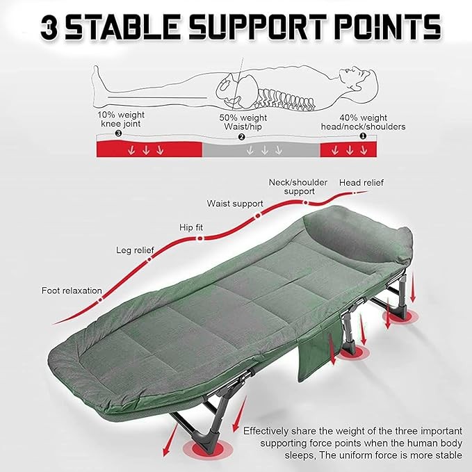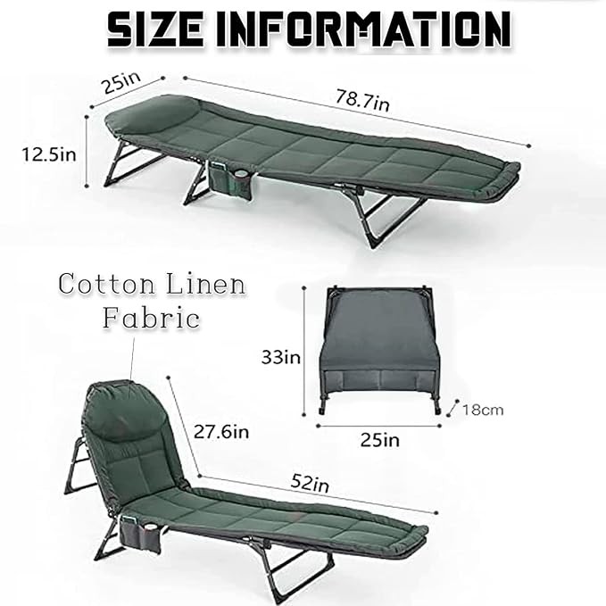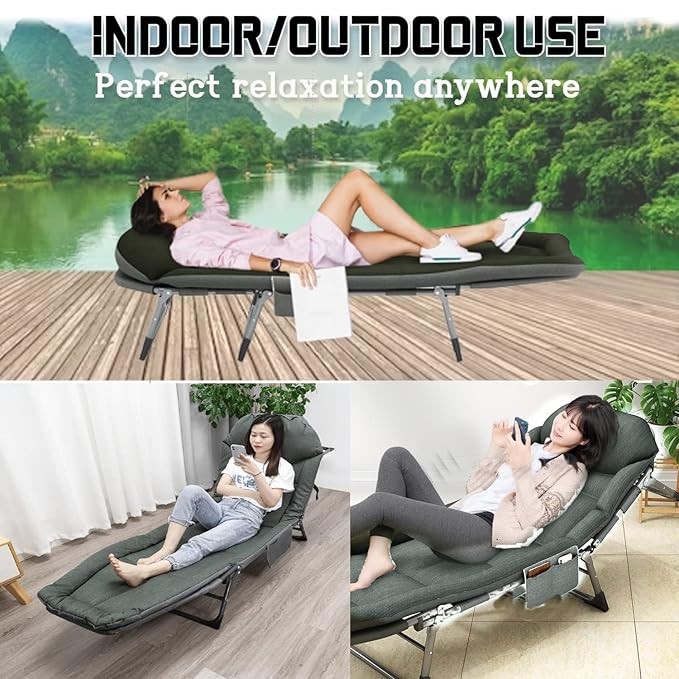 سرير فردي قابل للطي للنوم: يمكن استخدام سرير الصالة المسطح كسرير مستلق وسرير تخييم. إنه مثالي للاستخدام الخارجي والداخلي. مثالية للتخييم، والمشي لمسافات طويلة، وصيد الأسماك، والشاطئ، والفناء، وحمام السباحة، والحديقة، والمكتب.