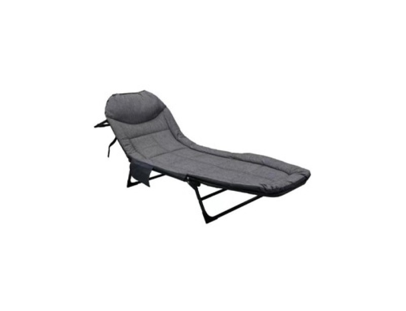 سرير فردي للتخييم قابل للطي: المواصفات - المادة؛ الألومنيوم، اللون؛ وسادة مخططة باللونين الأسود والرمادي؛ الطراز حديث، الحد الأقصى للوزن الموصى به 150 كجم، الحجم؛ (78.7*25*12.5 بوصة) الطول*العرض*الارتفاع