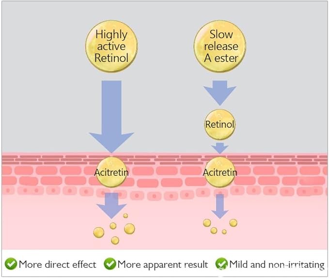 فيتامين أ (الريتينول) مضاد للشيخوخة، ويحفز إنتاج الكولاجين بشكل فعال ويساعد على تقليل الخطوط الدقيقة وتحسين خشونة الجلد.