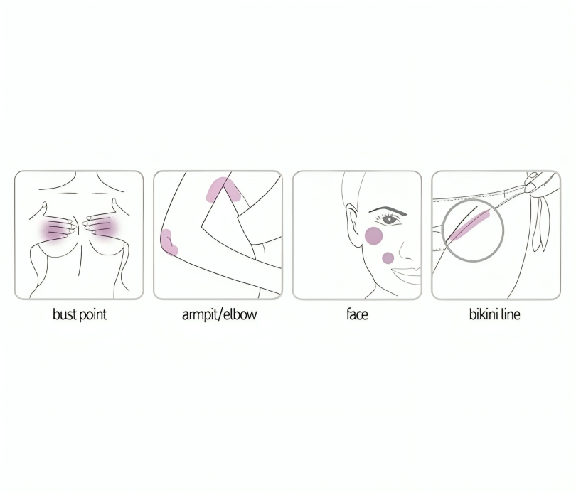 الوجه، الإبطين، الكوع، خط البكيني، وأي مناطق أخرى بحاجة للتفتيح.
