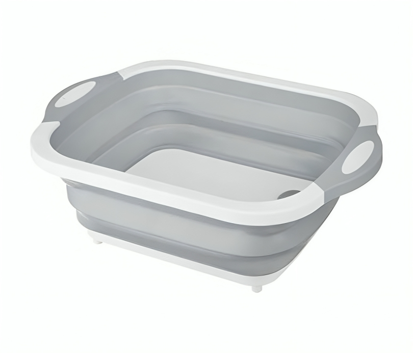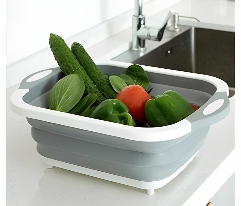 : يمكن استخدامه لغسل الفواكه والخضروات، كحوض غسيل صغير، أو حتى كلوح تقطيع عند طيه بالكامل.