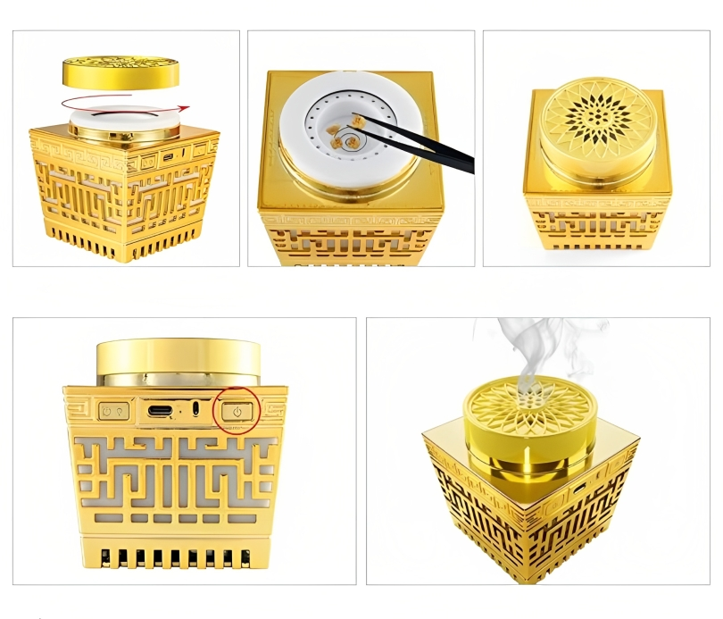 - مبخرة صغيرة مع تلاوة للقرآن: تجمع بين الوظيفة التقليدية للمبخرة والاستماع لتلاوة القرآن الكريم.