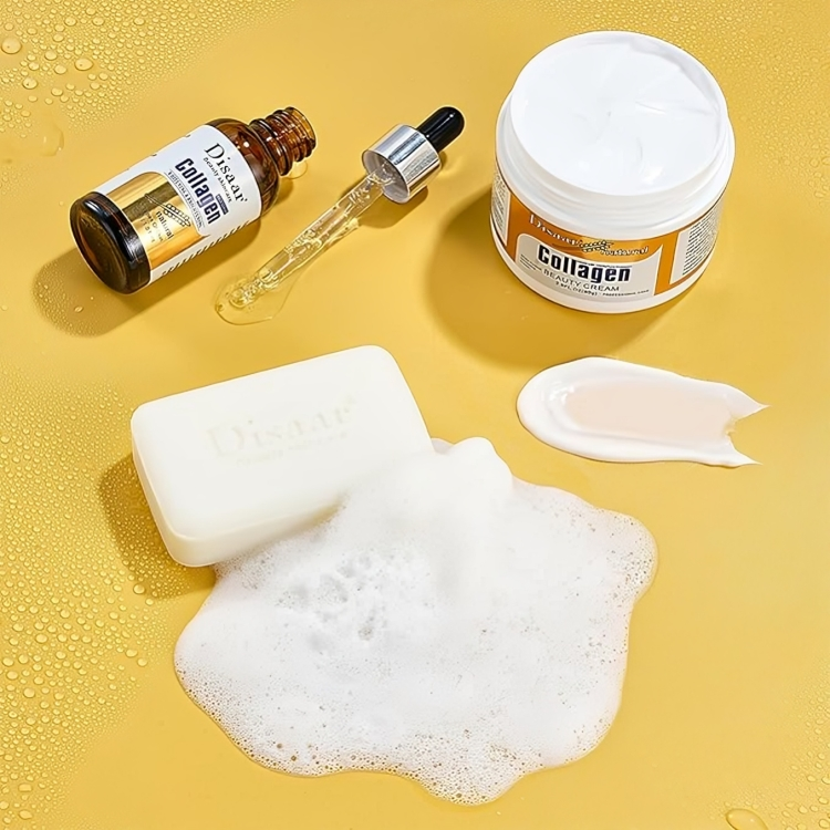 تتكون من 3 منتجات أساسية: صابونة وجه، سيرم، كريم.