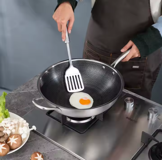 : يجمع بين أداء الفولاذ المقاوم للصدأ ومتانة الحديد الزهر وراحة السطح غير اللاصق.