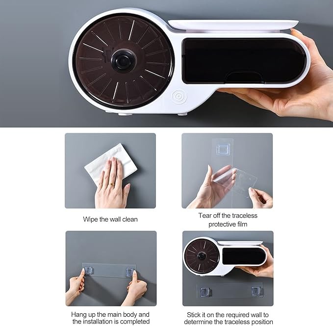 يمكن استخدام موزع المناشف الورقية المثبت على الحائط في الحمام والمطبخ لتجنب البقع والقطرات والغبار على ورق المرحاض.