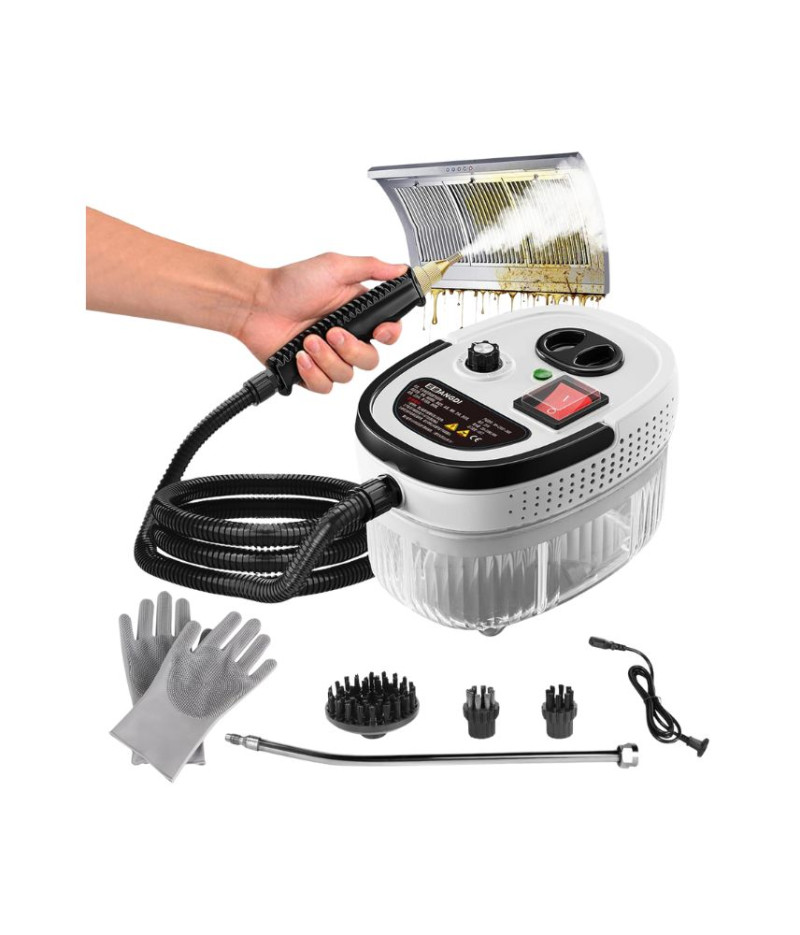 مزود بملحقات متعددة: فوهات مختلفة وفرش تنظيف وقفاز حراري.
