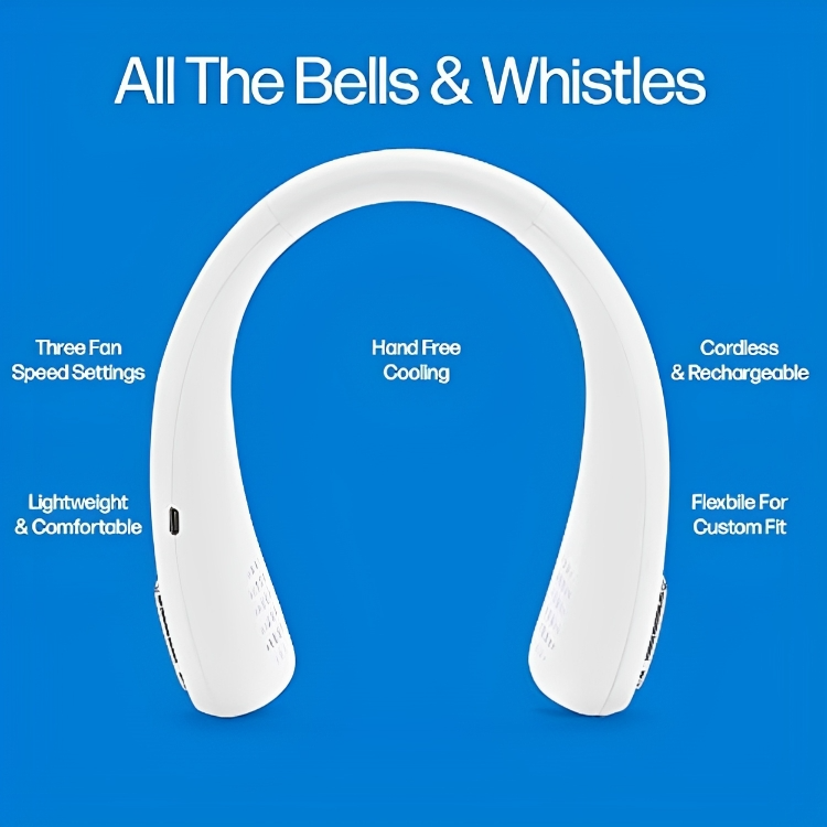 أفضل من المروحة اليدوية، يُلبس حول الرقبة لتبريد فوري.
