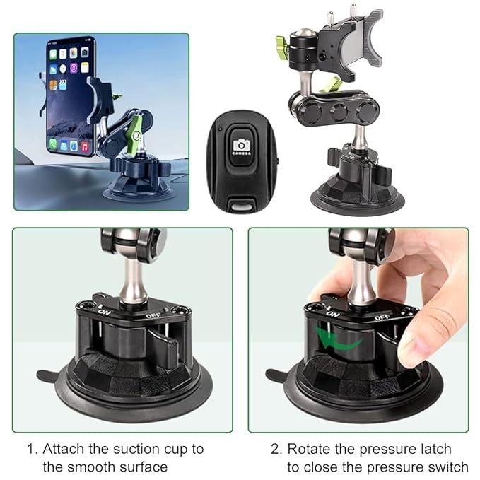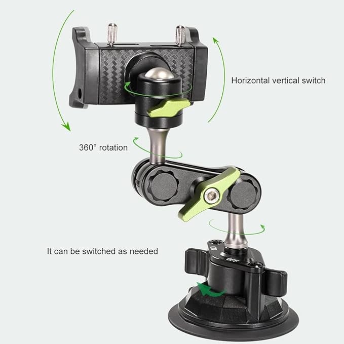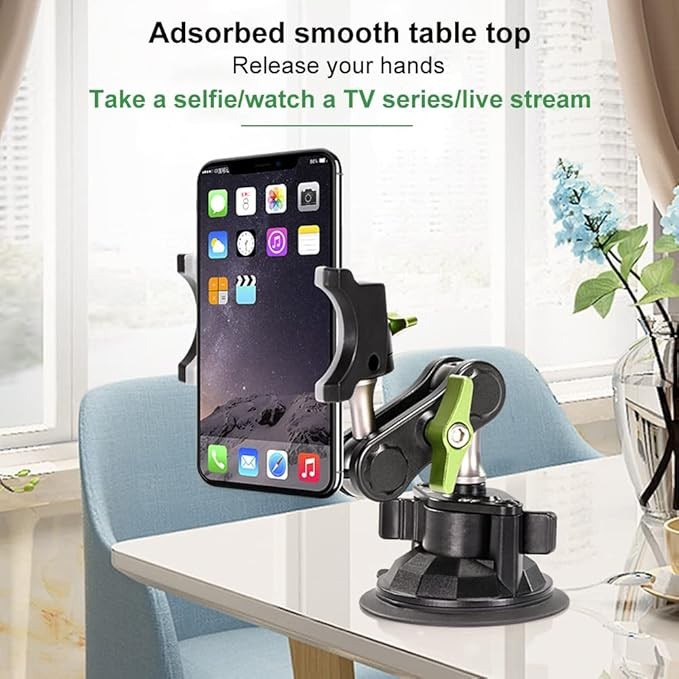 【ذراع رأس كروي عالمي للهاتف】- ينطبق التعديل الشامل على زوايا مختلفة. يمكن تعديل كل مفصل من المفصل العالمي وتدويره 360 درجة. مما يوفر أفضل زاوية رؤية. يحمل جميع مجموعات الهواتف والحافظات التي يتراوح عرضها من 2.3 بوصة إلى 3.5 بوصة.