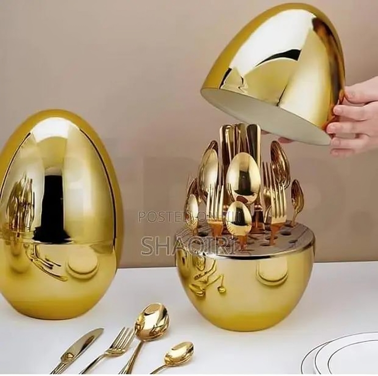 تصميم أنيق: مجموعة أدوات مائدة فاخرة مع حامل بيضاوي الشكل لإضافة لمسة جمالية على المائدة.