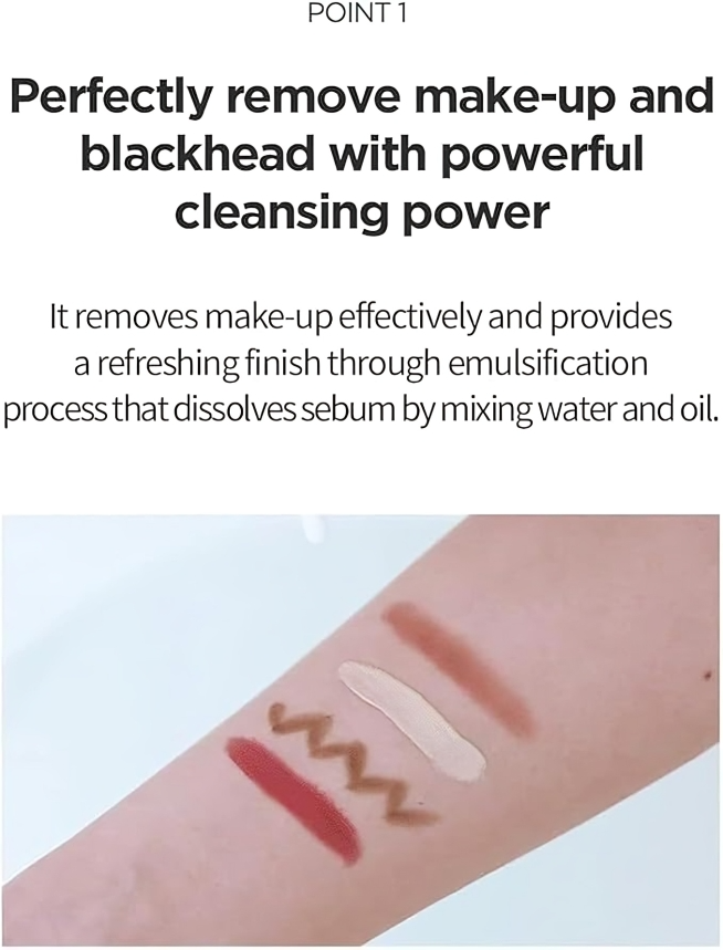 مكونات لطيفة مع مستخلص أوراق القلب: تزيل الرؤوس السوداء والمكياج والزيوت بلطف دون انسداد المسام.